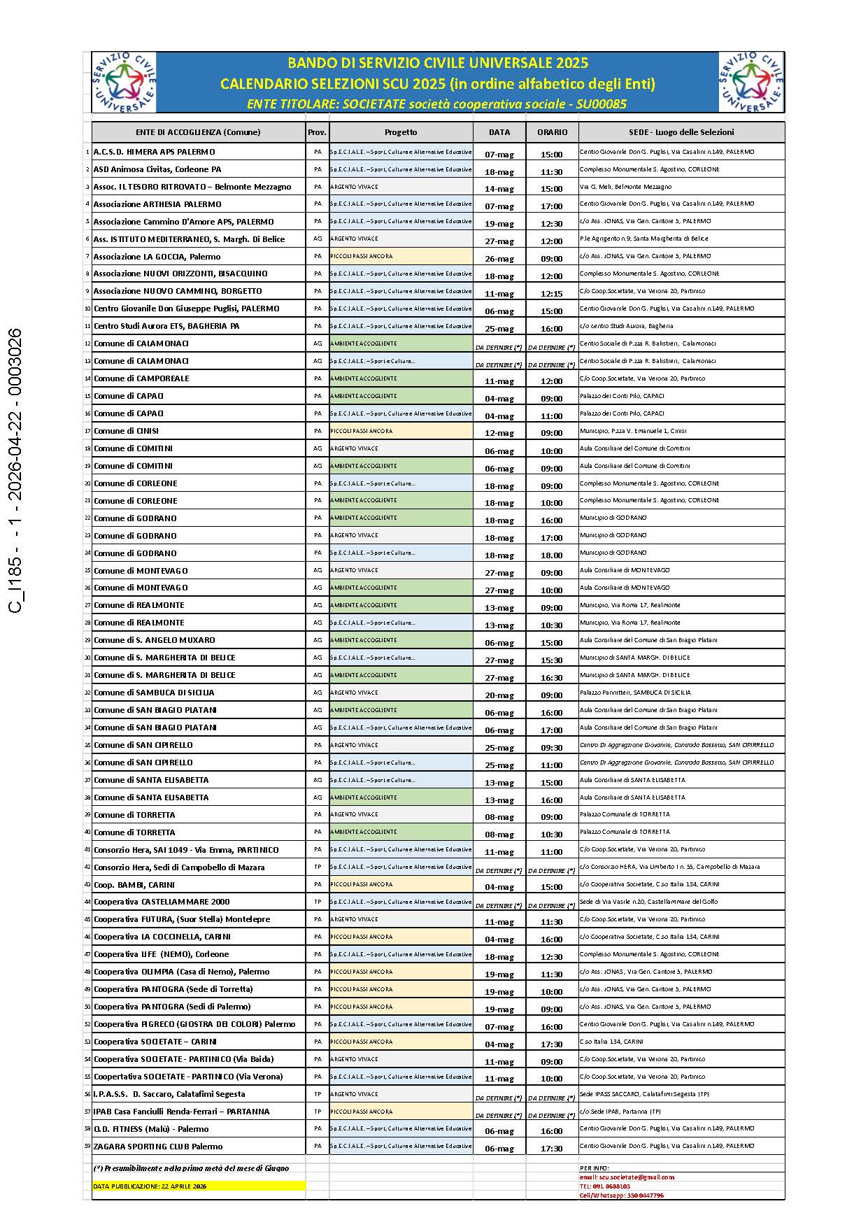 ADUNANZA DEL CONSIGLIO COMUNALE DEL 30/04/2026 - INTEGRAZIONE DELL’ORDINE DEL GIORNO