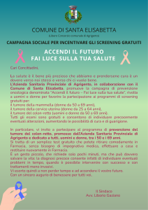 L’Azienda Sanitaria Provinciale di Agrigento, in collaborazione con il Comune di Santa Elisabetta, promuove la campagna di prevenzione oncologica denominata “Accendi il futuro – Fai luce sulla tua salute”, rivolta a uomini e donne per favorire la partecipazione ai programmi di screening gratuiti per:
