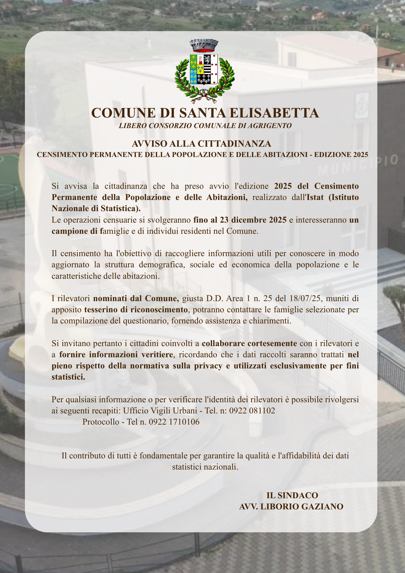 Anche il nostro Comune partecipa alle operazioni censuarie, che coinvolgeranno un campione di famiglie e di individui residenti.